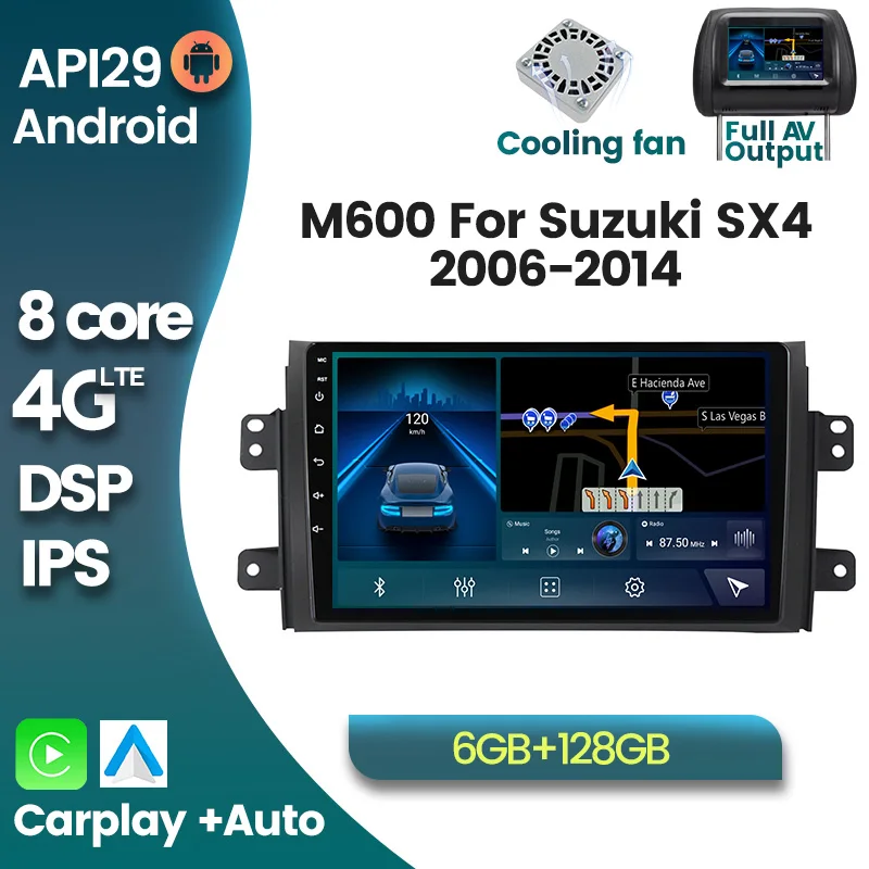Автомагнитола Carplay DSP на Android 10,0 со встроенным мультимедийным проигрывателем и GPS-навигацией для Suzuki SX4 2006-2014 головное устройство 4G 2 Din BT WIFI