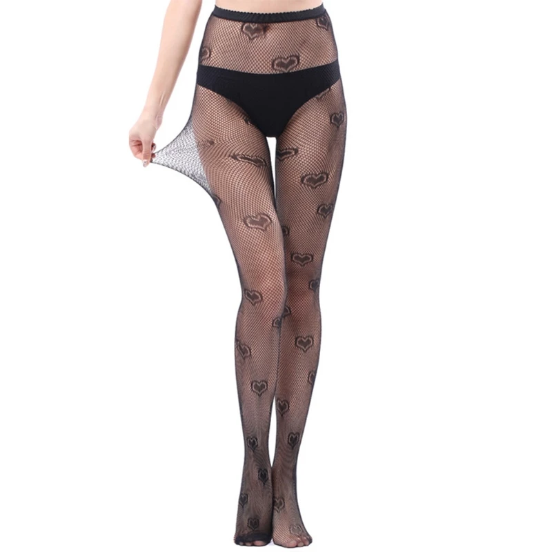 Готический панк-стиль Харадзюку, ажурные колготки с узором в виде сердца/черепа, черный цвет.