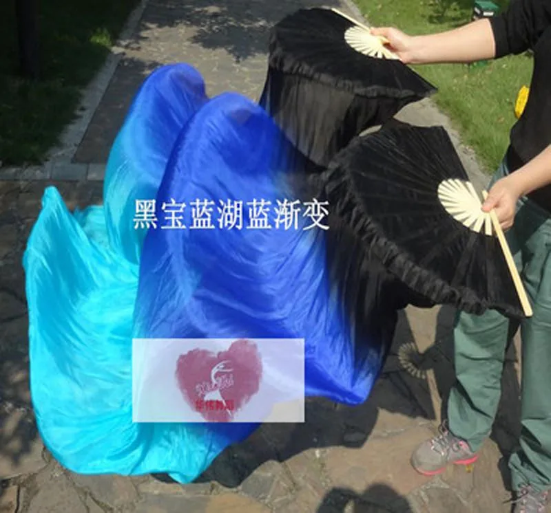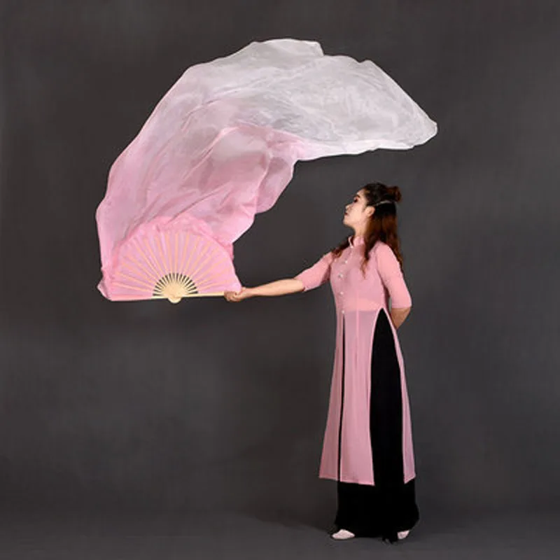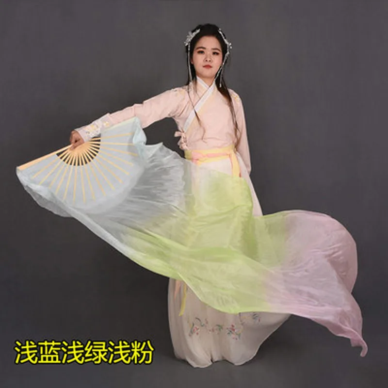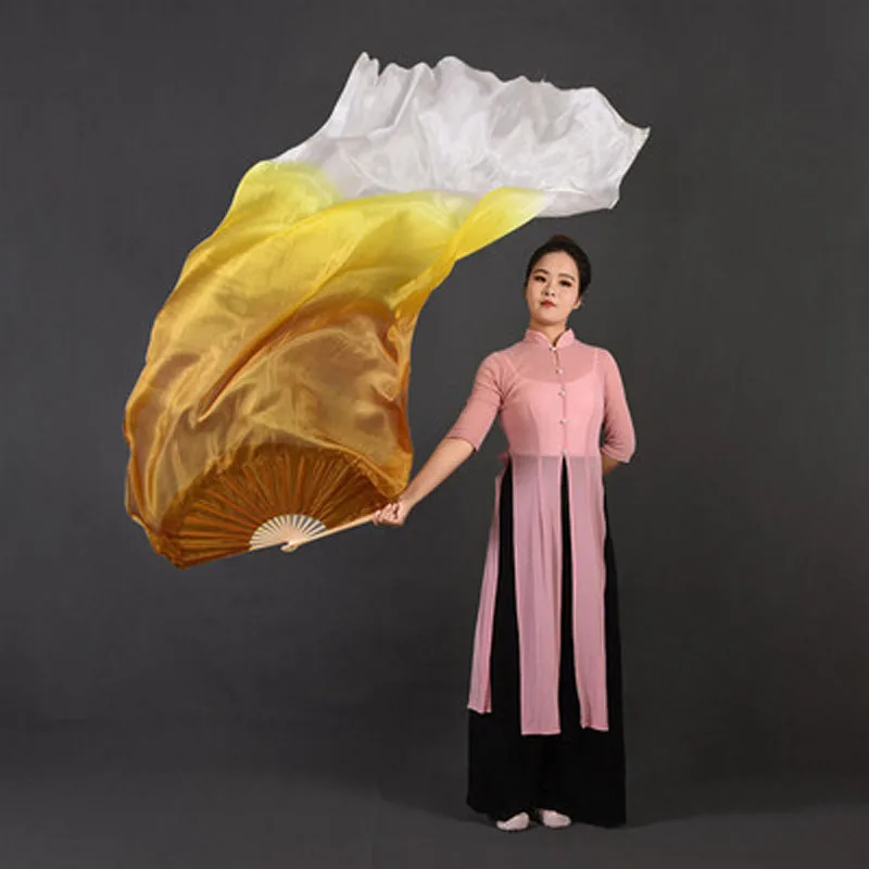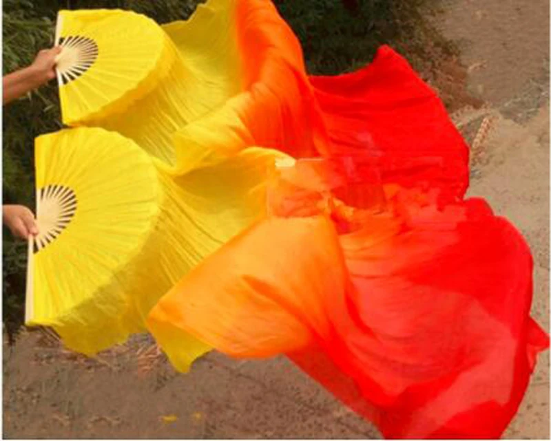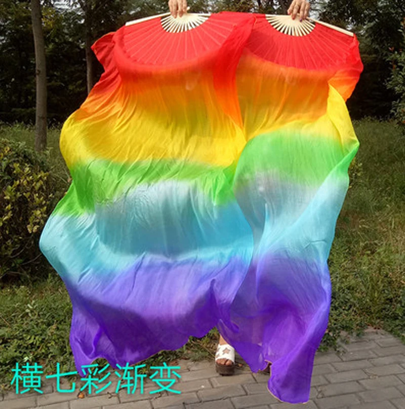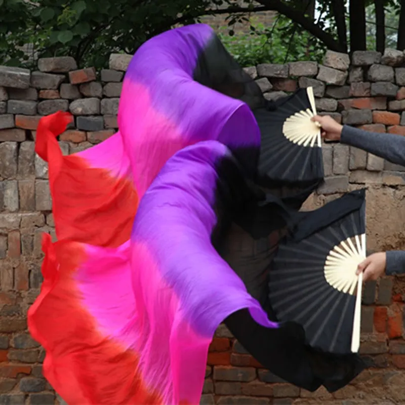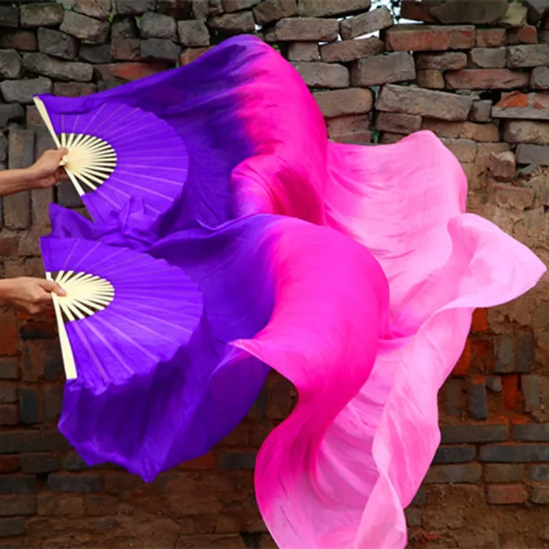 120 см150 см180 см чистого шелка танец живота вентилятор вуаль китайский бамбуковый веер 1 пара (1L + 1R) Градиент Цвет Шелковый веер вуали покрашенного вручную