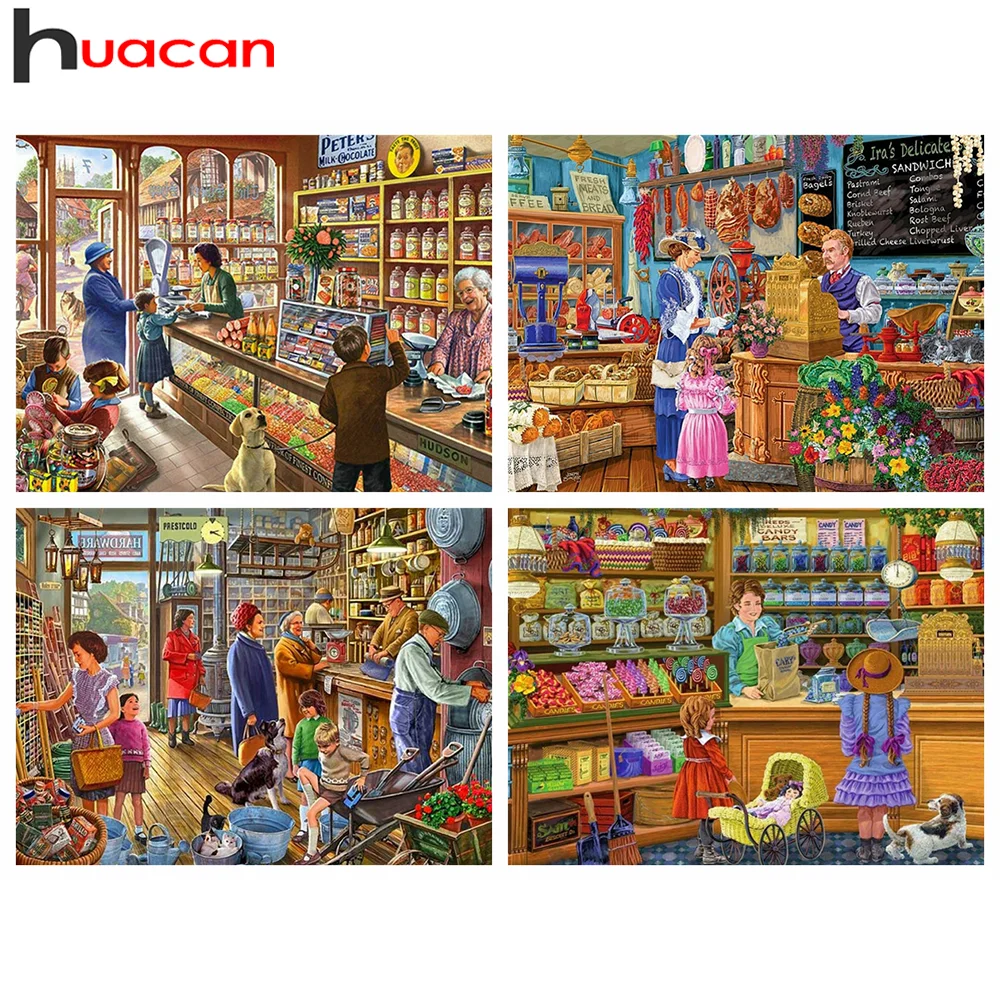 Huacan 5D DIY алмазная живопись магазин полная мозаичная картина, выполненная в технике алмазной вышивки пейзаж бисерные картинки ручной работы подарок спальня украшения