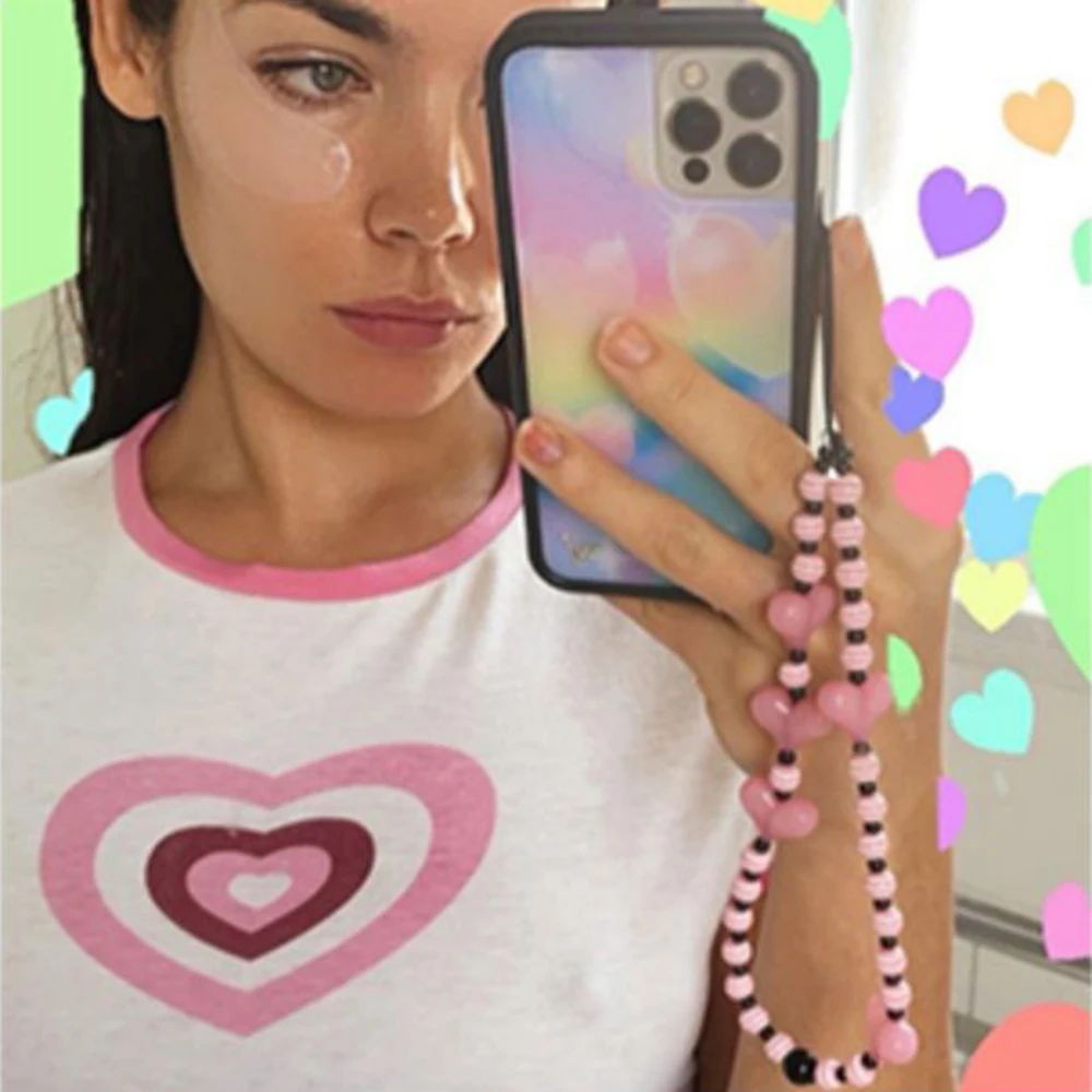 2021 летние акриловые бусины в форме сердца мобильный телефон цепи браслеты с подвесками на ремешке для анти-потерянный ремешок для женщин Мобильный телефон Аксессуары