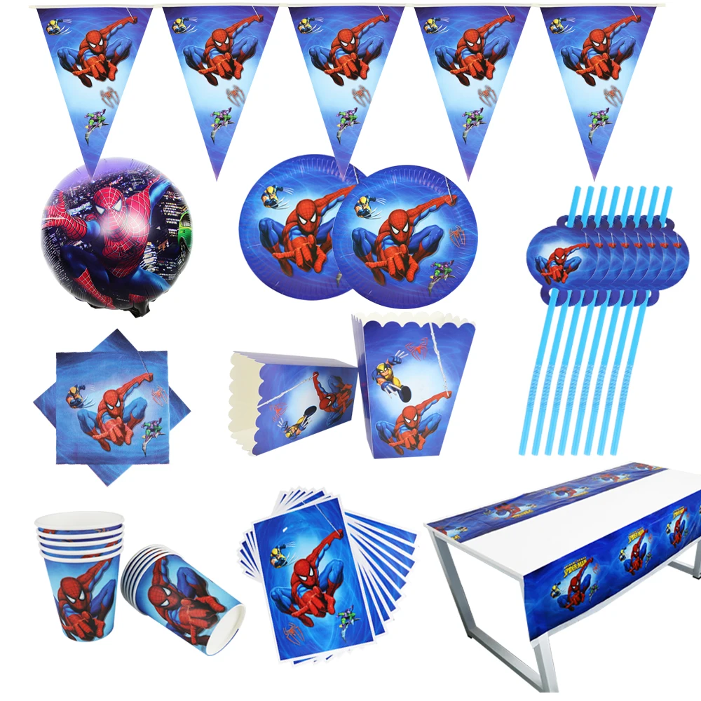 Новый Дизайн Человек-паук, украшения для дня рождения для мальчиков, сумка для подарков, ложка для детского душа, одноразовая посуда, принадлежности