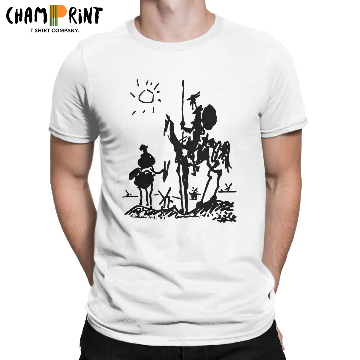 Мужские футболки с рисунком Пикассо, забавная хлопковая футболка с короткими рукавами, футболки докиксота, рыцаря, одежда, подарок на день рождения