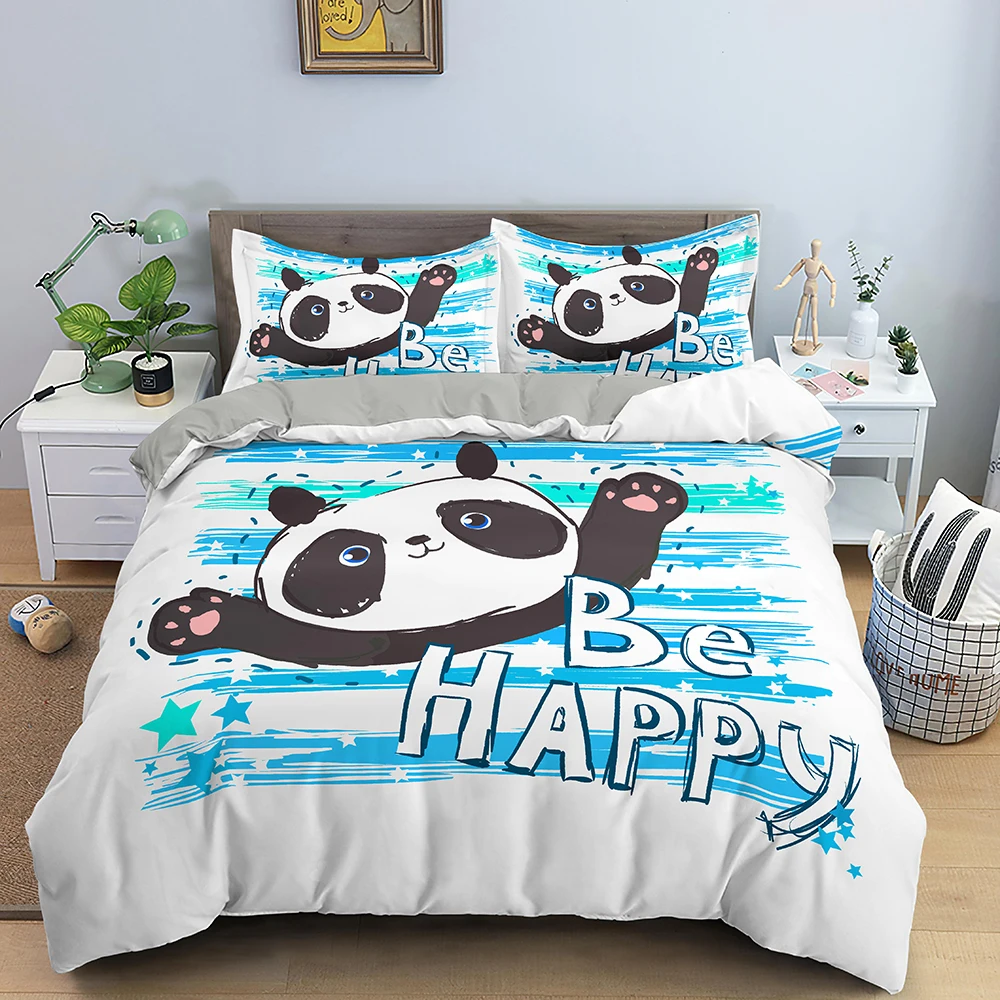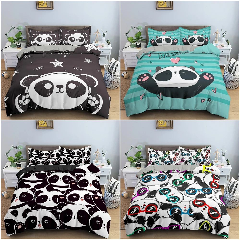 Пододеяльник для мальчиков и девочек, двойной комплект черного и белого цветов с милым рисунком животных, панды, медведя, постельное белье