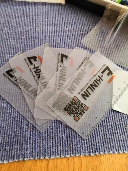 Доставка долгая-два месяца.Упаковано в пакет.Количество соответствует заявленому.Качество пластика хорошее-тонкий и упругий,посторонего запаха нет.Размером с банковскую карточку.Товар и продавца могу рекомендовать
