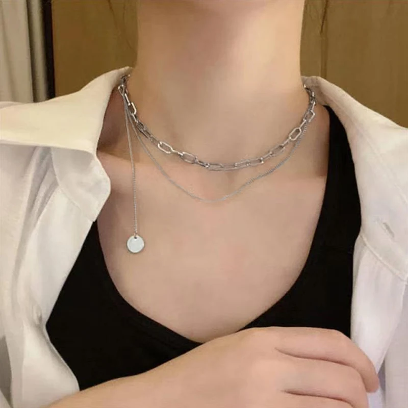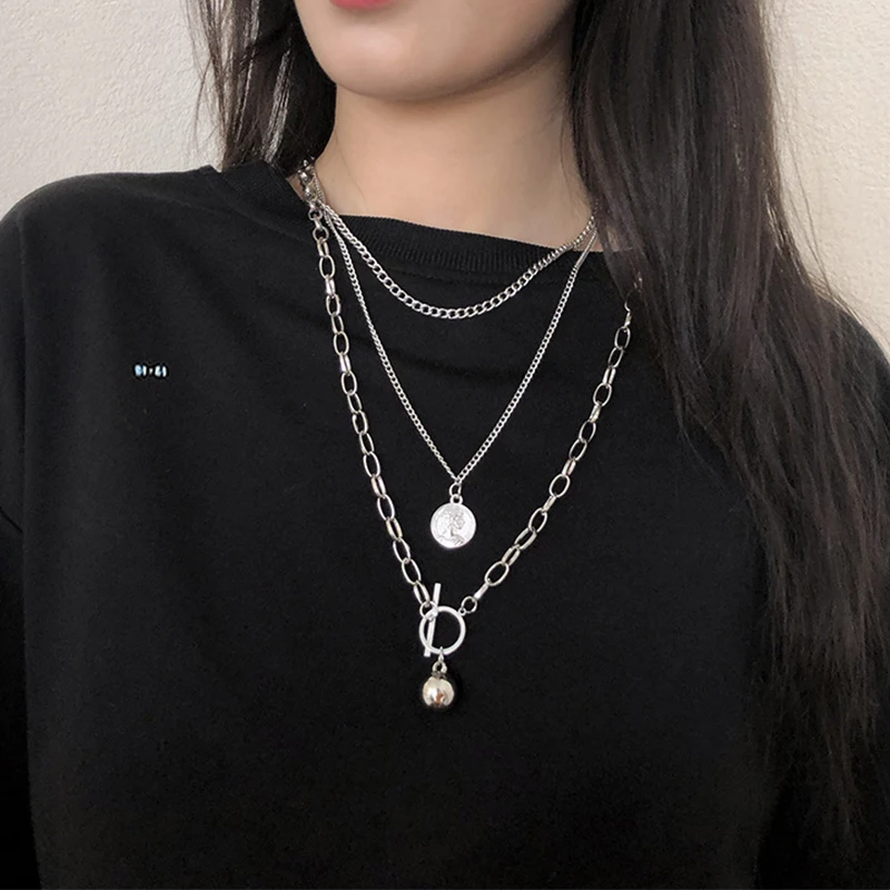 Цепочка-чокер Женская, многослойная, серебристого цвета, с портретом, массивная, 2021