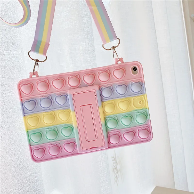 Милый мультяшный чехол с пузырьками и ремешком для IPad 11 Mini12345 10,2 Pro9.7 10,5 10,9 11 Air4 123, антистрессовый Мягкий силиконовый чехол для планшета S