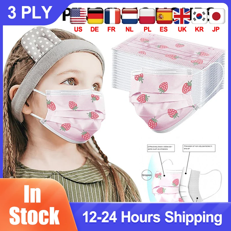 Быстрый и Россию 200PSC маска для детей розового цвета с милым клубничным принтом Одноразовые Медицинские Хирургические 3 Слои фильтр нетканый Earloops маска