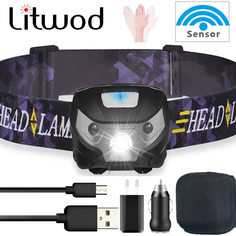 Мощный налобный фонарь для кемпинга лм, перезаряжаемый, светодиодный налобсветильник онарь с датчиком движения тела, фонарик для кемпинга, лампа с USB