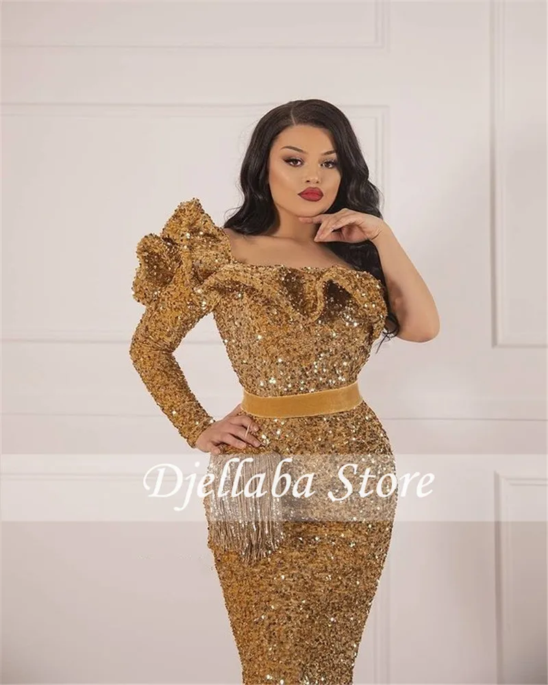 Блестящие золотые вечерние платья с блестками на одно плечо, элегантное официальное платье-русалка, свадебные платья, индивидуальный пошив