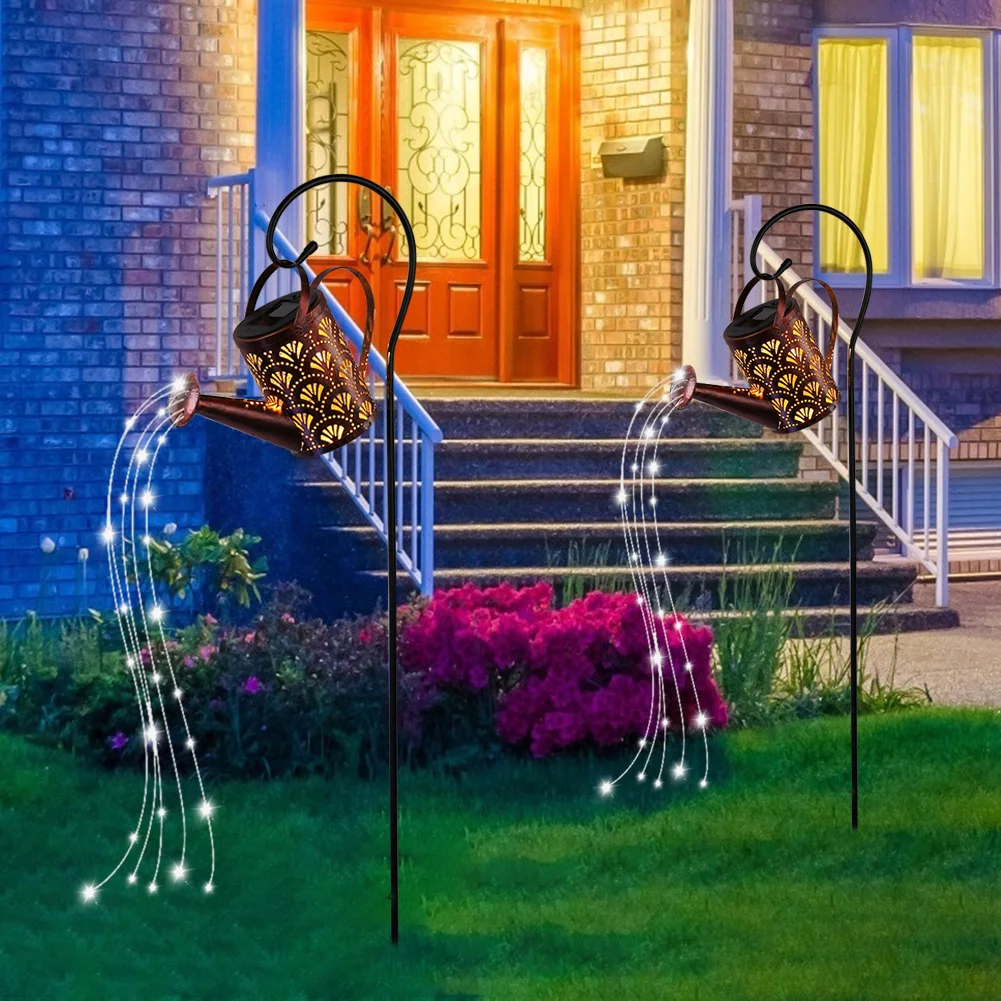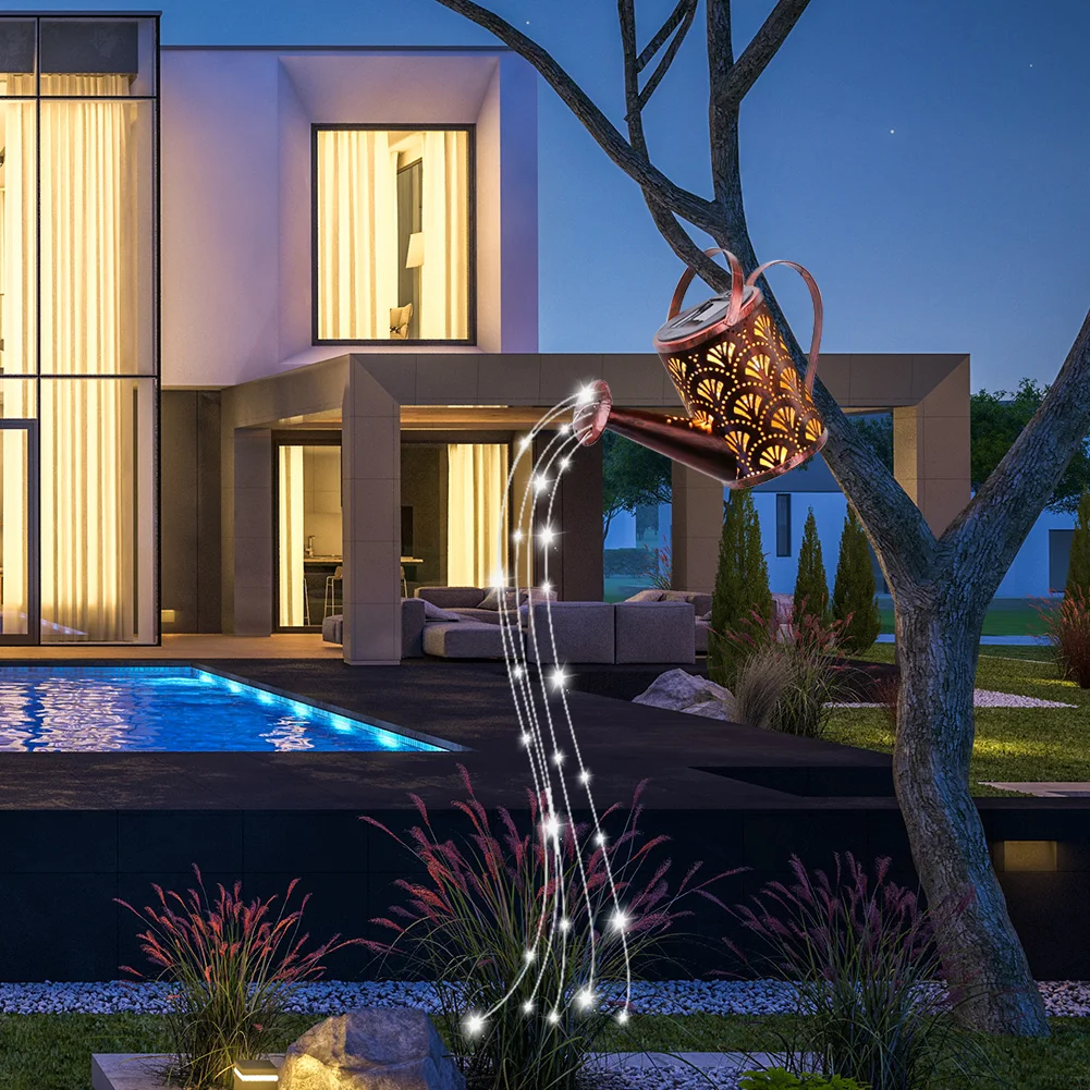 Светодиодный солнечный душевая лейка струнные лампы садовые художественные металлические железные Водонепроницаемый арт воды посыпать чайник светильник Декорации для ландшафтного дизайна