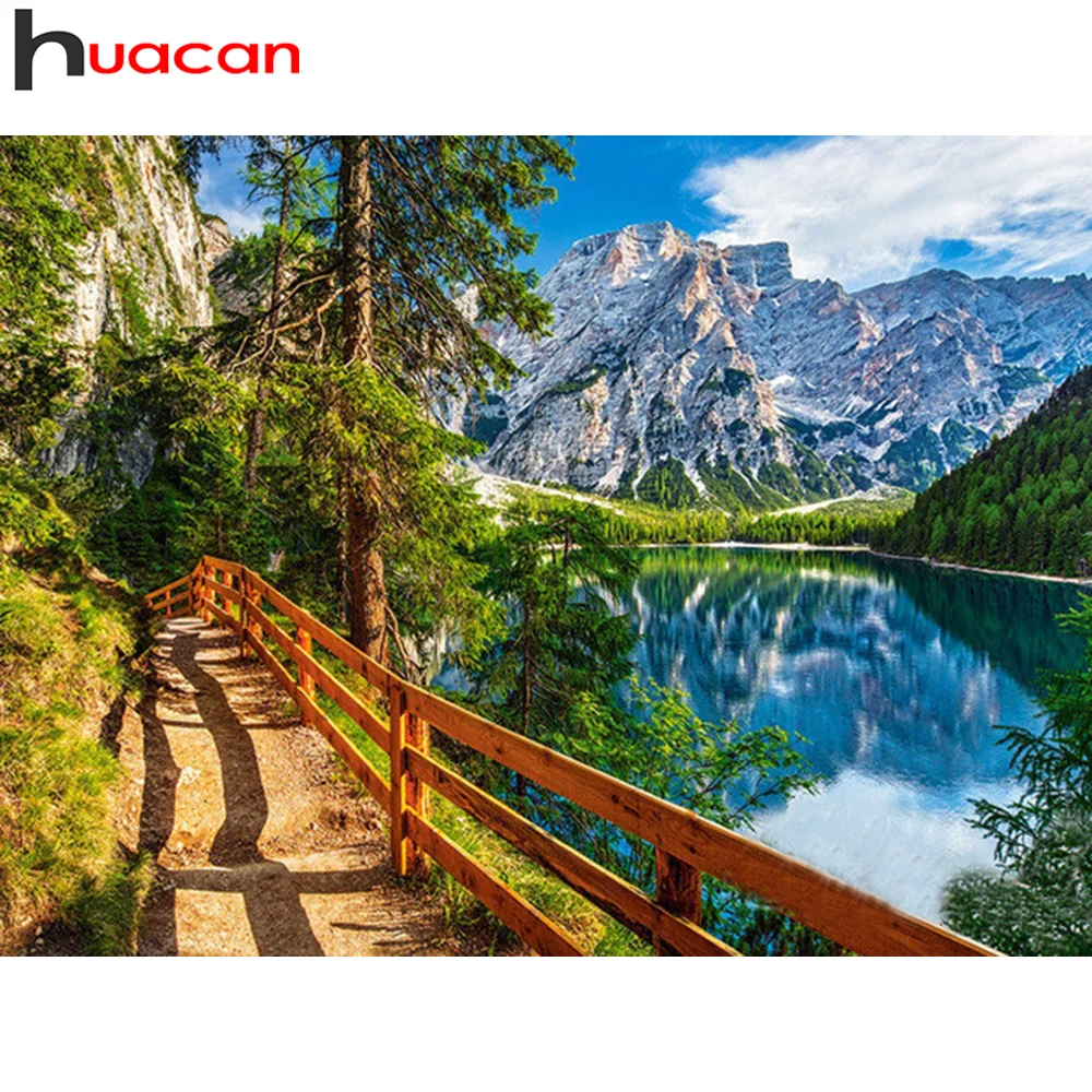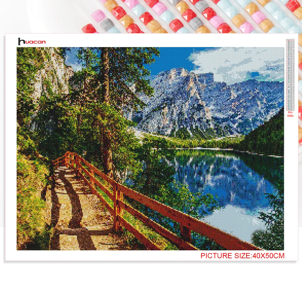 Алмазная 5D Вышивка Huacan, Набор для творчества сделай сам с изображением гор, реки, пейзажа, мозаика, вышивка крестиком, творческие хобби