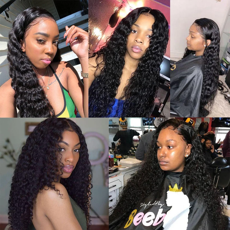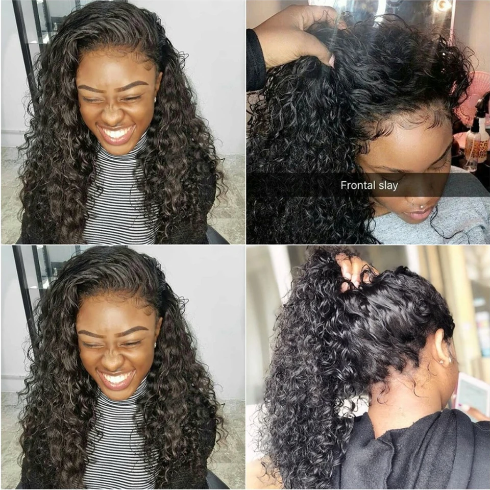 Бразильские 30 дюймовые вьющиеся кружевные передние парики из человеческих волос, глубокие волнистые передние парики на сетке, водные волны, 13x4 Hd передние парики на сетке, полностью Реми