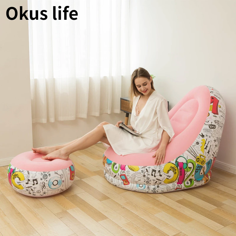 Новый надувной диван с граффити, комбинированный диван из ПВХ, складной откидной матрас, кресло для отдыха, надувной насос