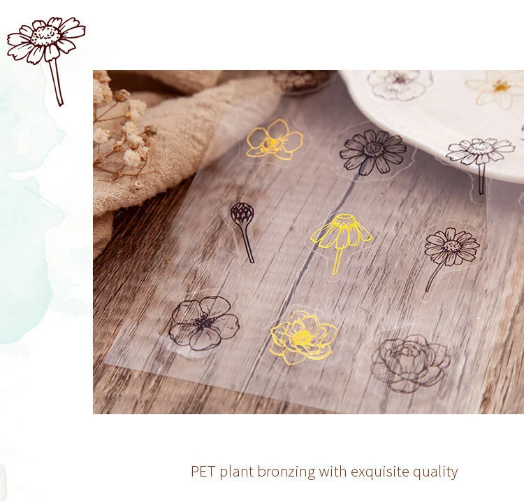 Комплект из 2 предметов Kawaii красочные стикеры растения и цветы для горячего тиснения стикеры журнал украшения Скрап водонепроницаемые канцелярские принадлежности аксессуары