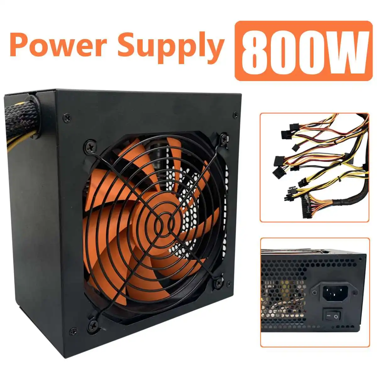 800 Вт источник питания 120 мм оранжевый светодиодный вентилятор 24 Pin PCI SATA ATX 12V компьютерный источник питания