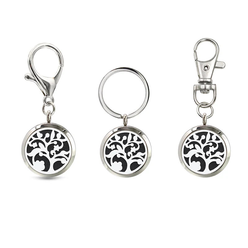 Цветок Дерево 30 мм Нержавеющаясталь диффузор брелок с медальоном с эфирными маслами ароматерапии духи, логотипы марок машин, брелок для ключей, автомобильные аксессуары, брелок для автомобиля цепи 10 шт. колодки подарок