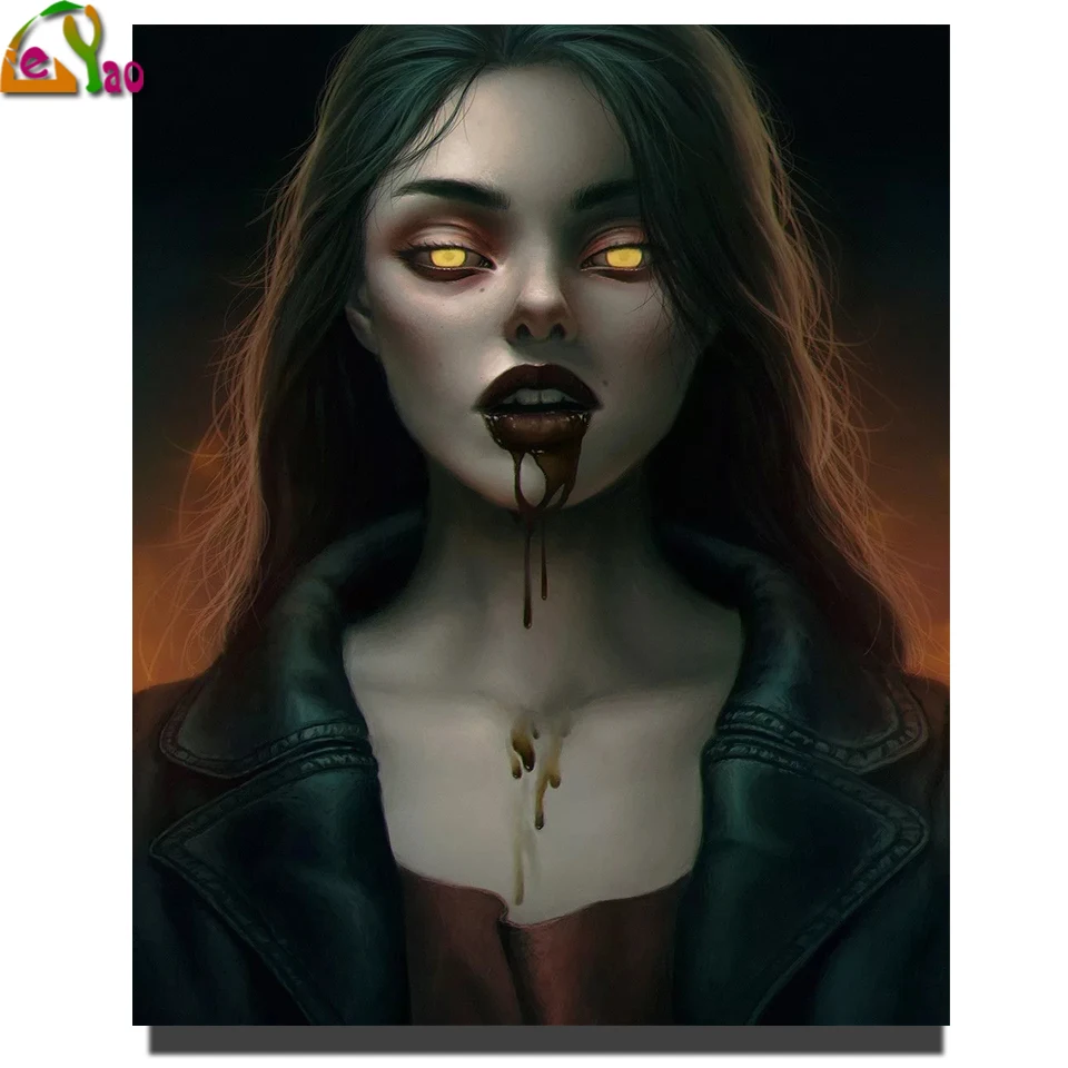 Полная дрель квадратная Алмазная картина Вампир Девушка 5D Готическая вышивка алмаз вышивка крестом желтые глаза украшение для дома искусство