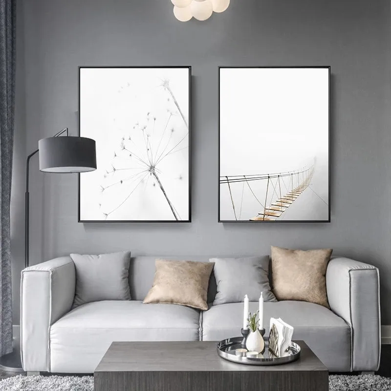 Черно-белые абстрактные настенные художественные плакаты перо и растения Одуванчик цветок на холсте картины декор комнаты Настенные картины