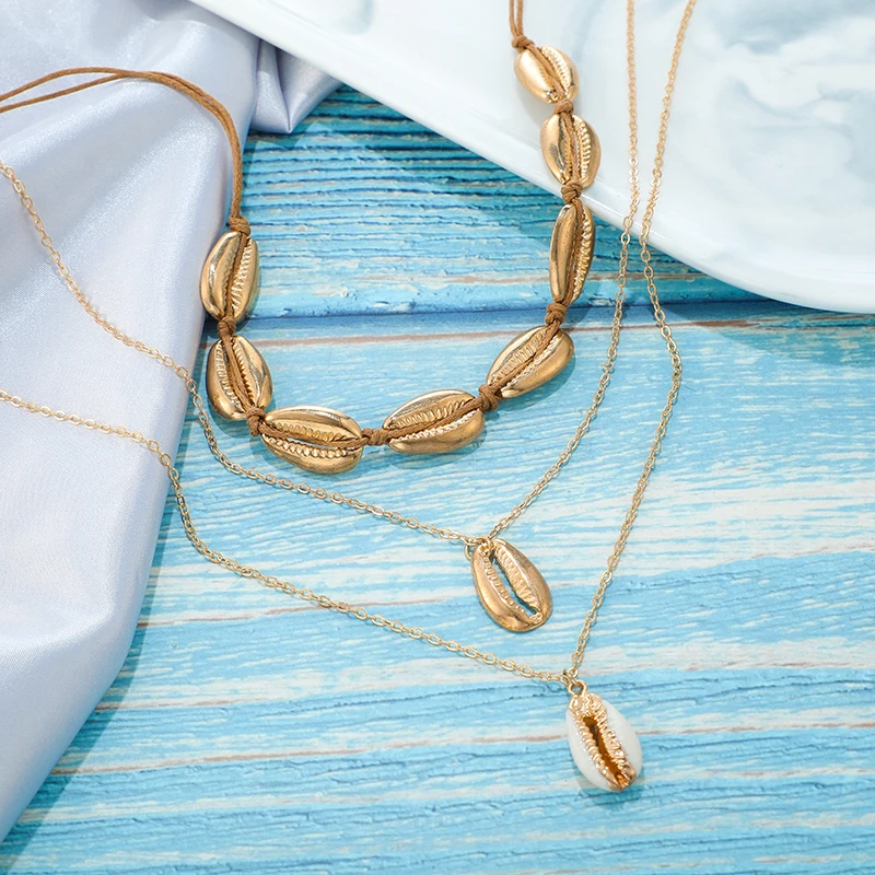 HuaTang в богемном стиле золото оболочка жемчужное ожерелье для женщин Многослойные очаровательные колье-чокер Регулируемая пляжная Jewerlry аксессуары B07303