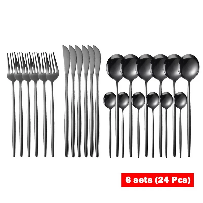 24 шт. высококлассные золотой набор посуды Нержавеющаясталь набор посуды Ножи вилка, кофейная ложка набор столового прибора можно мыть в посудомоечной машине набор столовых приборов