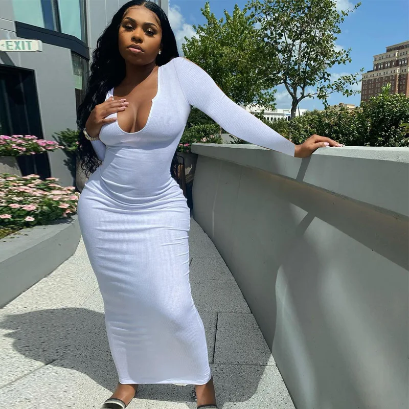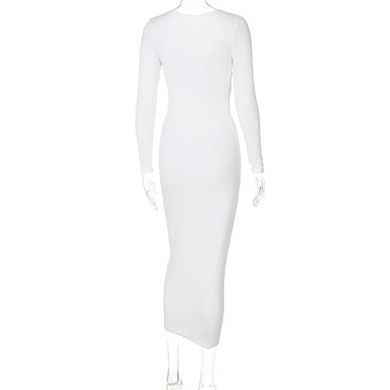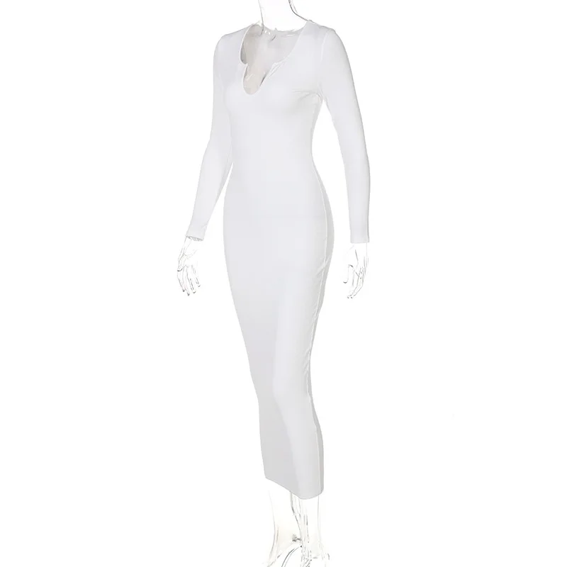 Платье женское трикотажное, с длинным рукавом, V-образным вырезом