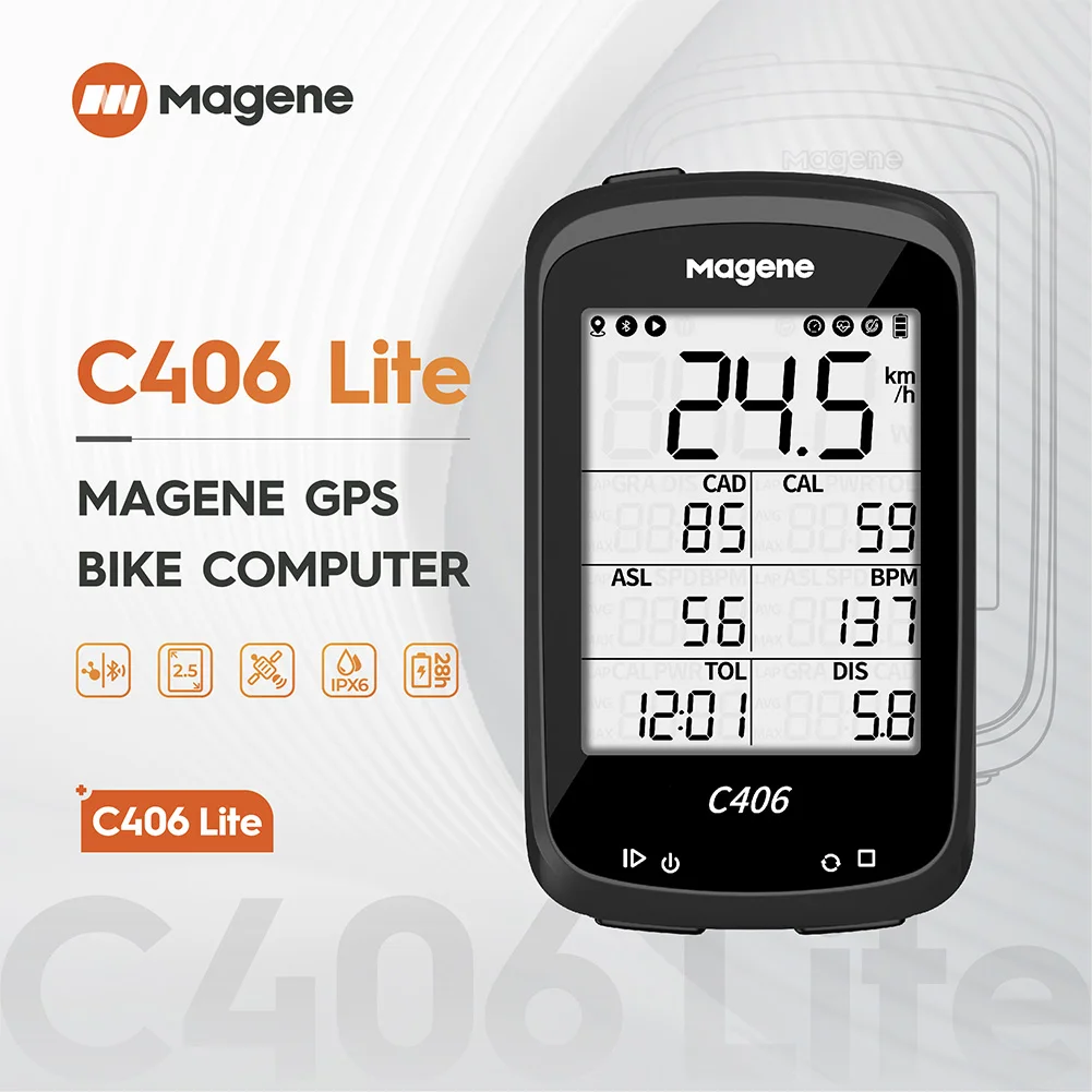 Велосипедный компьютер Magene C406 Lite, GPS, беспроводной спидометр, водонепроницаемый, Bluetooth, датчик частоты вращения педалей