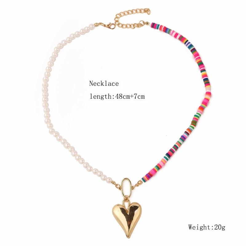 2021 тренд в богемном стиле разных цветов из полимерной глины с жемчугом и бисером асимметрия ожерелье колье для женщин модные золотые, стильный элегантный кулон "Сердечко"