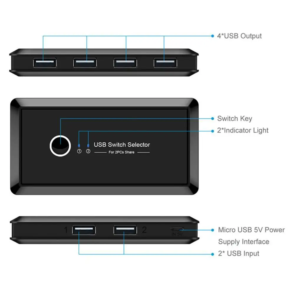 2x4 USB 3,0 переключатель обмена 2 порта шт обмен 4 USB устройства для клавиатуры мыши принтераСпецификация:Цвет: черныйТип интерфейса: USB3.0Режим переключения: ключПорт питания: Micro USB 5 В (за исключением линии электропитания)Размер изделия: 118x56x1 6 мм/4.65x2.2x0.63inВес брутто продукта: 260 гФункция: 2 компьютера имеют 4 usb-устройстваПоддержка системы: для Windows, MAC, Vista, Linux и других систем и может использоваться без установки драйверовПримечание:1. Из-за различных настроек монитора и светильник эффект, фактический цвет элемента может быть s светильник ly отличается от цвета, представленного на снимках. Спасибо!2. Возможны отклонения в 1-3 см вследствие измерений вручную. Посылка включает:1 х usb-коммутатор2 X линии передачи данных