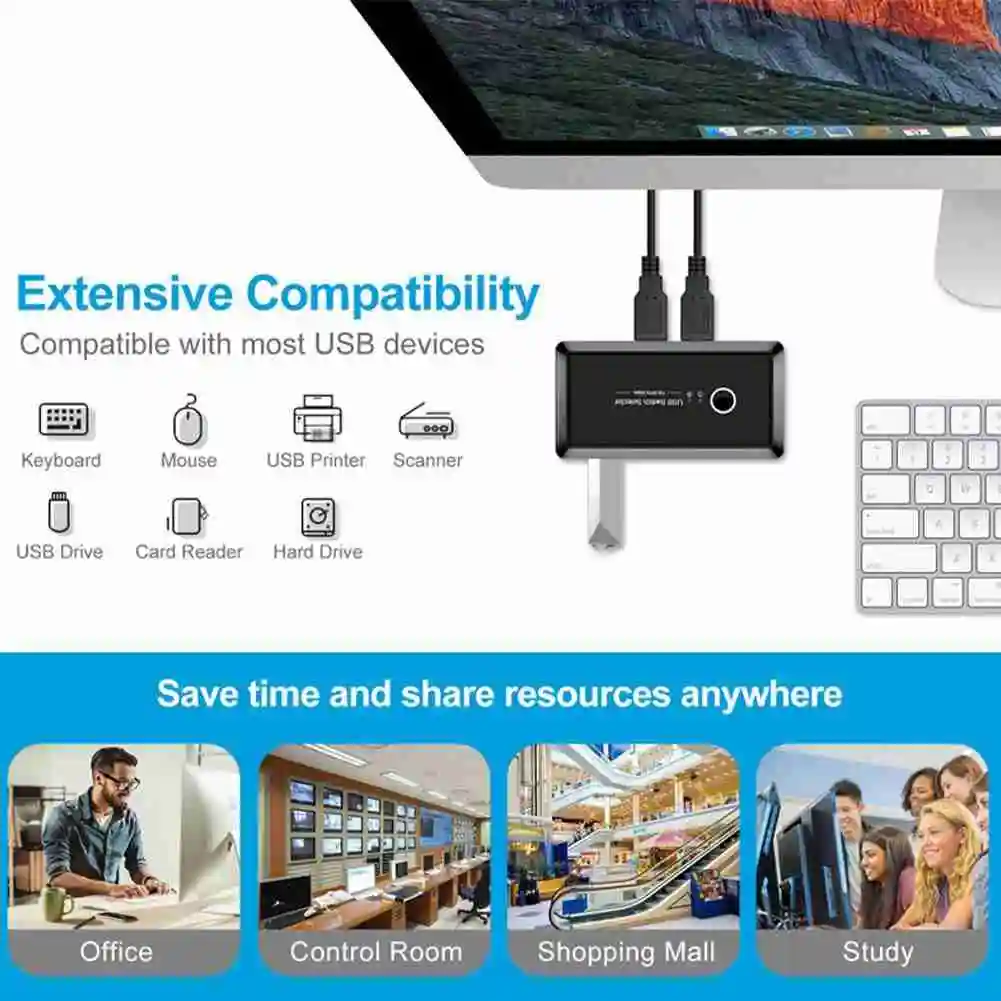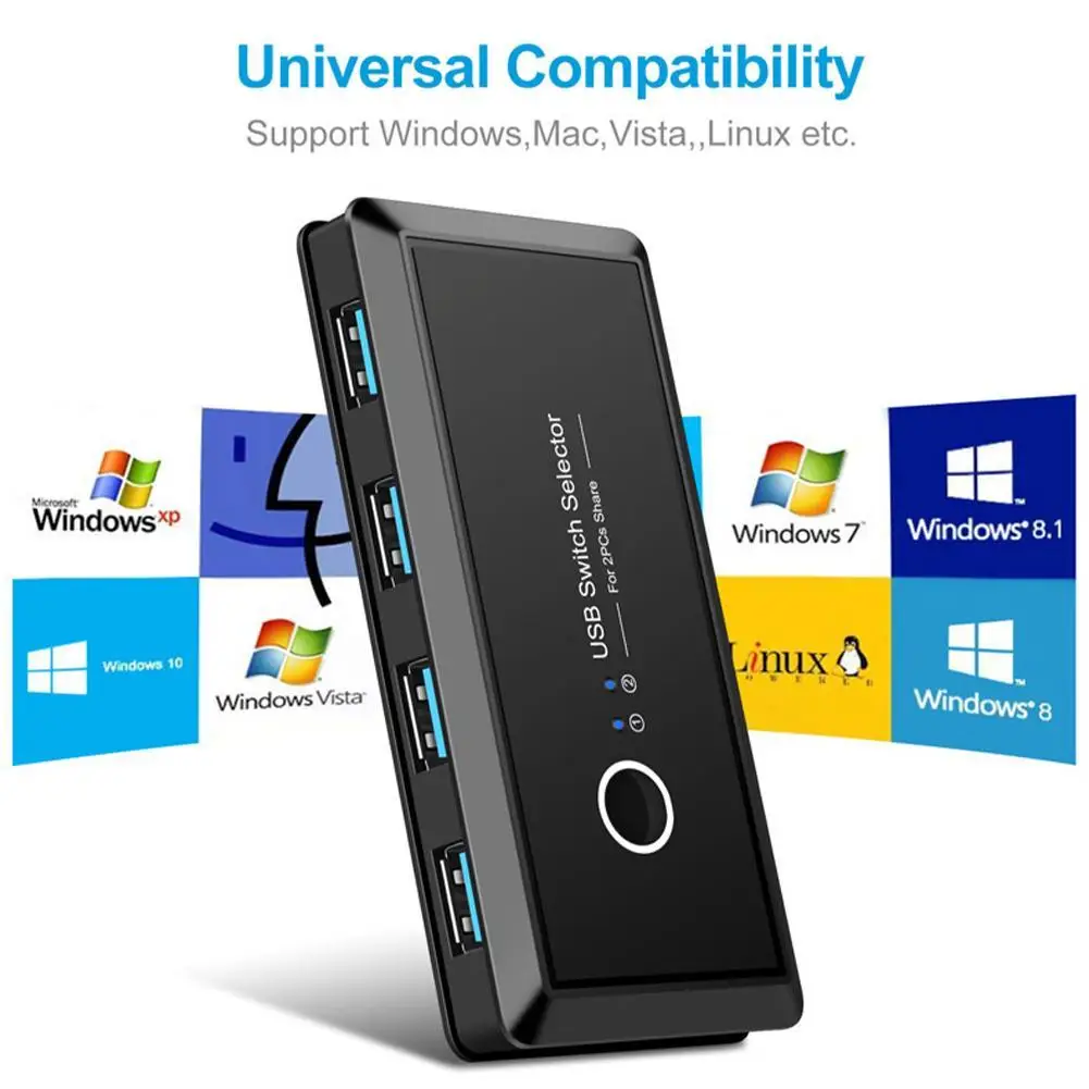 KVM-переключатель USB 3,0 2,0, 2 шт., с общим доступом на 4 устройства, USB-переключатель, переключатель для Windows 10, ПК, клавиатуры, мыши, принтера