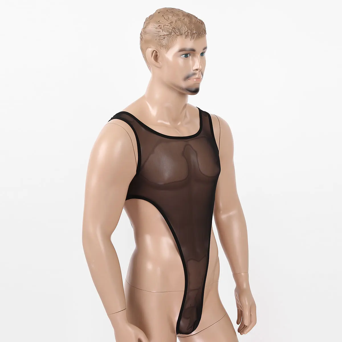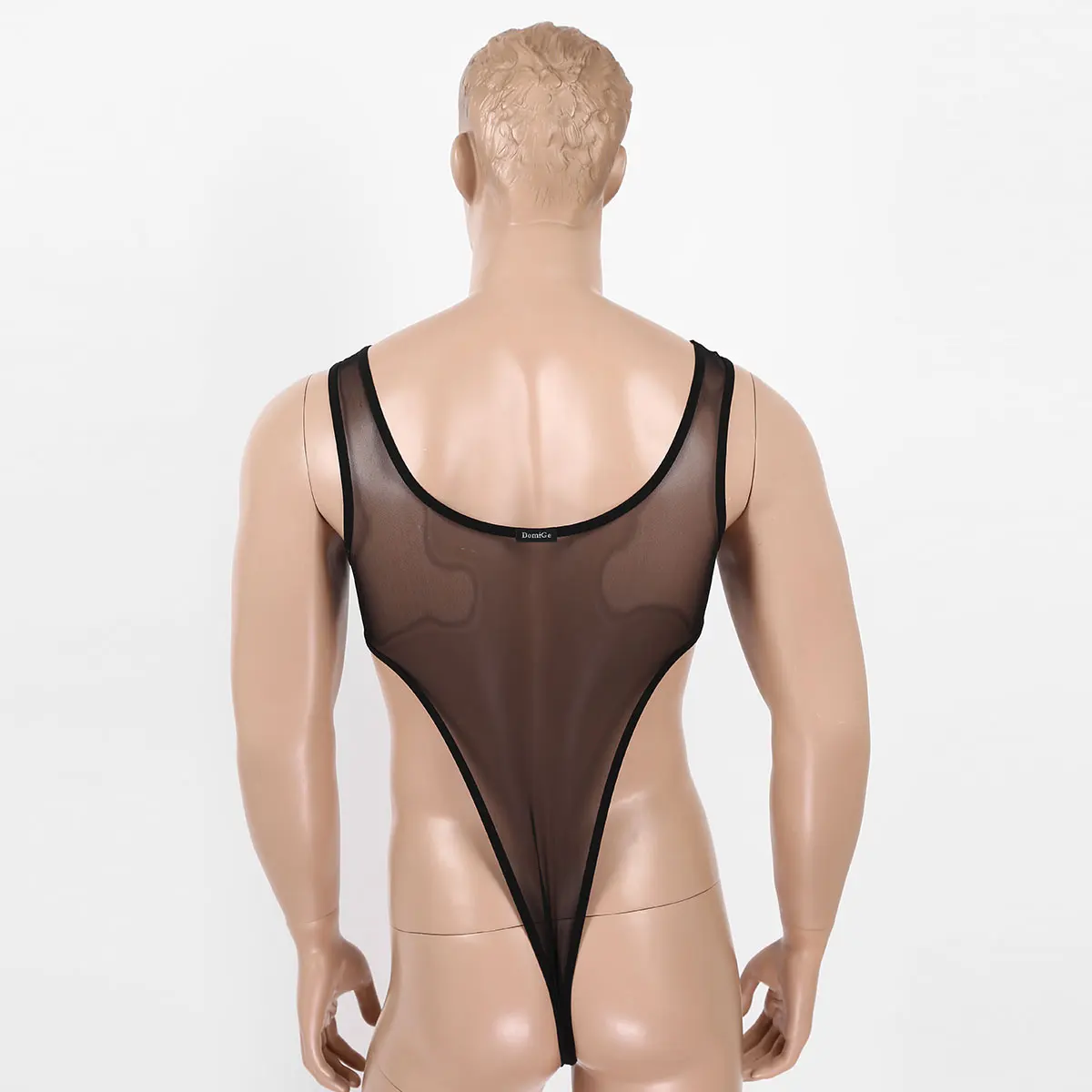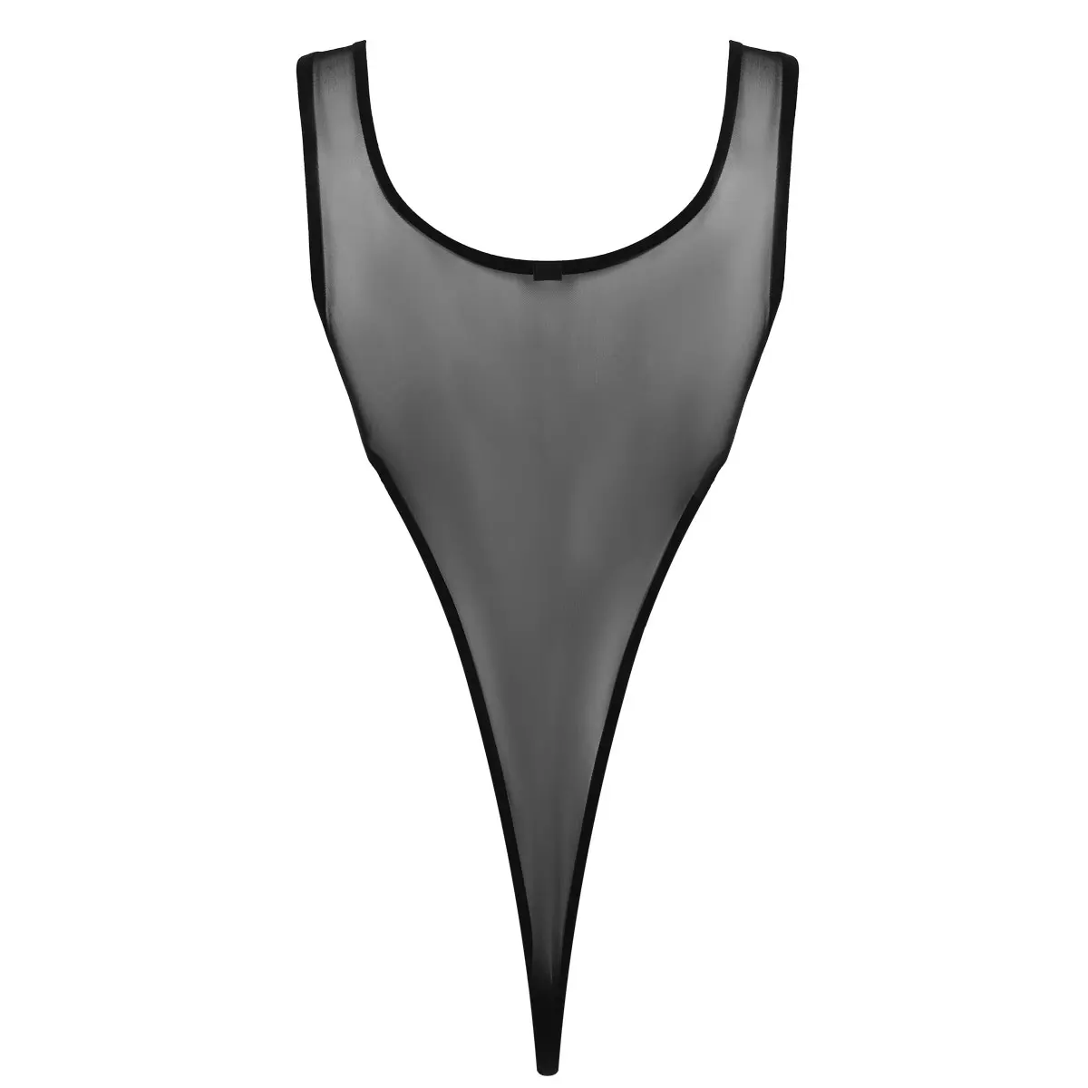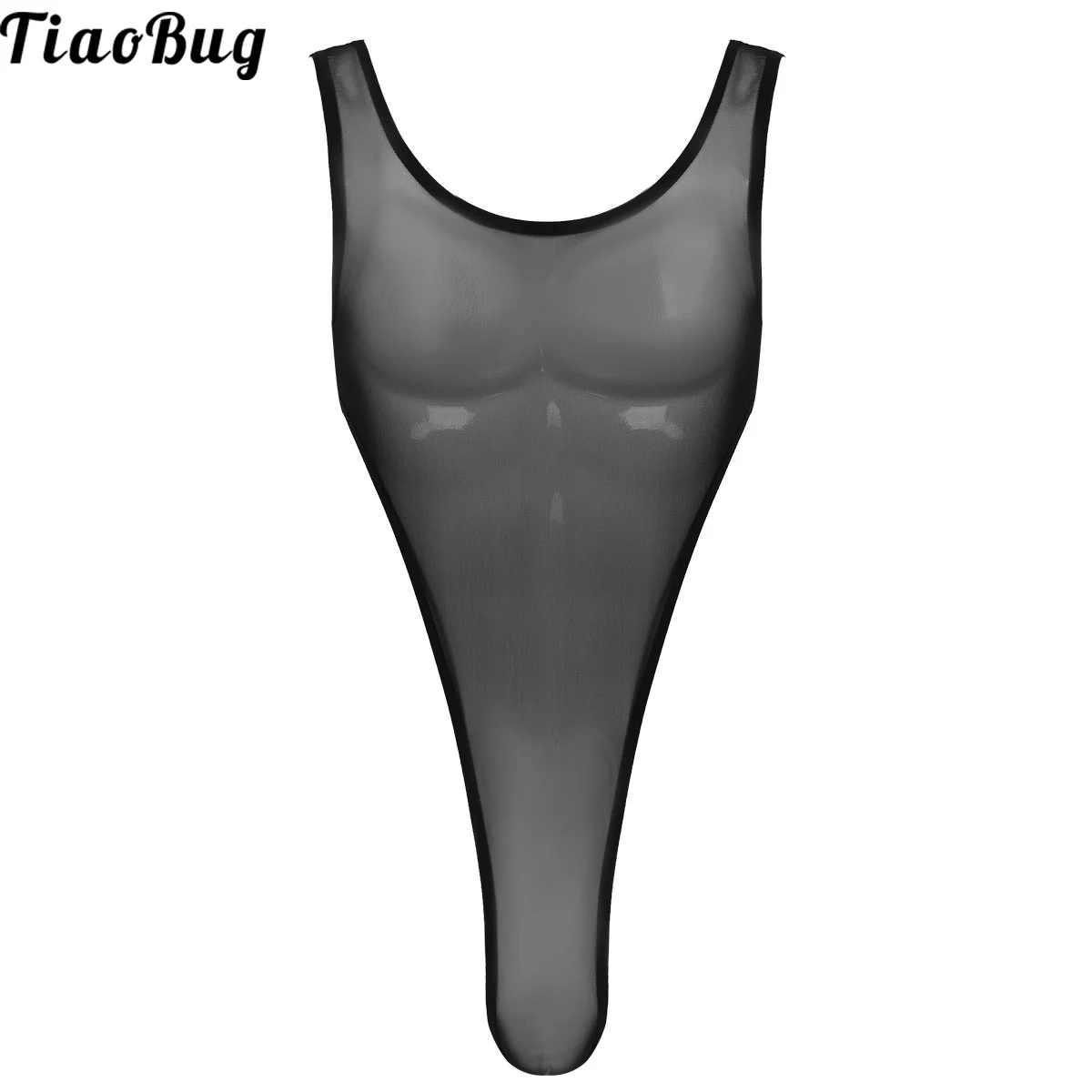 TiaoBug Мужской Цельный прозрачный сетчатый купальный костюм нижнее белье с U-образным вырезом без рукавов с высоким вырезом трико комбинезон купальник