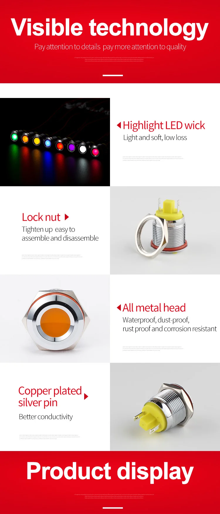 IP67 Водонепроницаемый один Цвет мигающий светодиодный металлический Предупреждение индикатор светильник 22 мм пилот, сигнальный огонь 3V 6V 12V 24V 36V DC вентилятор с проводом