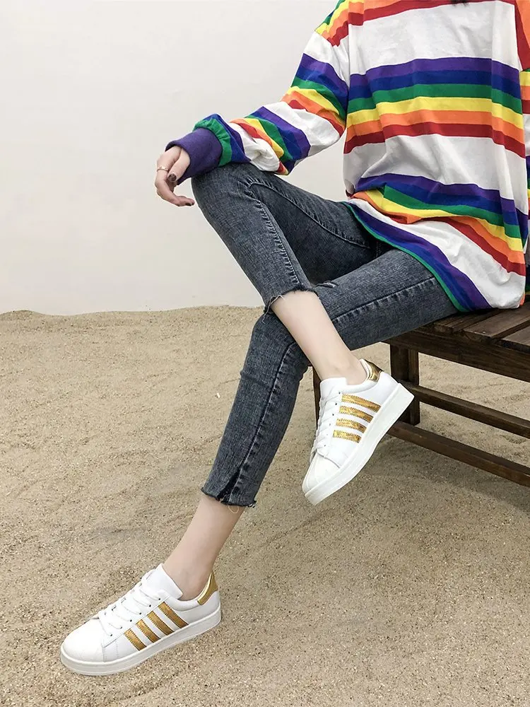 Женские кроссовки из ПУ кожи, Уличная обувь на платформе, с круглым носком, Вулканизированная подошва, роскошные брендовые белые, на лето