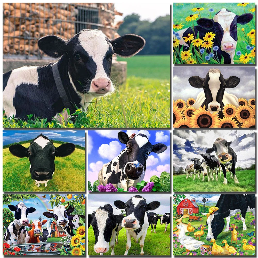 Алмазная живопись 5D сделай сам, полностью круглая вышивка крестиком с изображением коровы, мозаика с животными, украшение Стразы