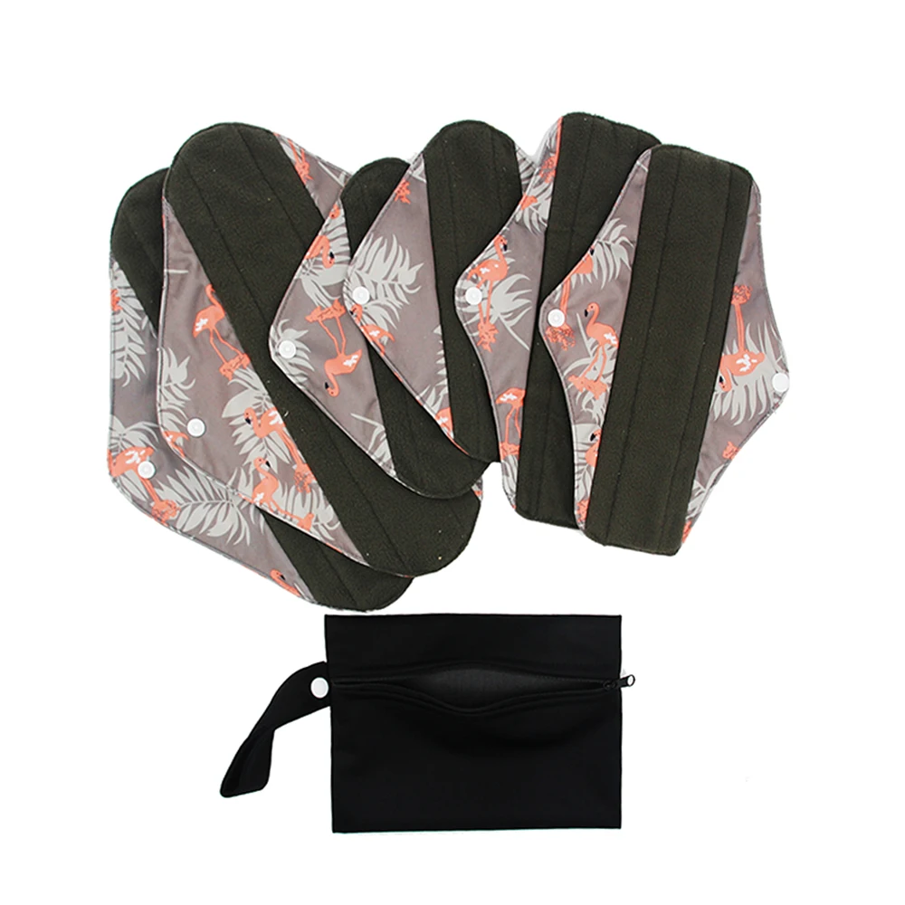 Женские менструальные трусики, 7 шт.компл., многоразовые угольно-Бамбуковые тканевые гигиенические прокладки для ежемесячных прокладок с 1 пакетом