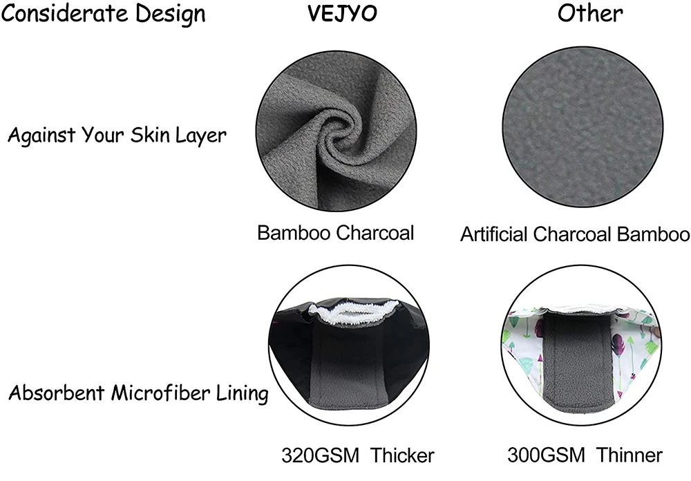 Внутренний слой --- мягкие дышащие экологически чистые многоразовые угольно-Бамбуковые