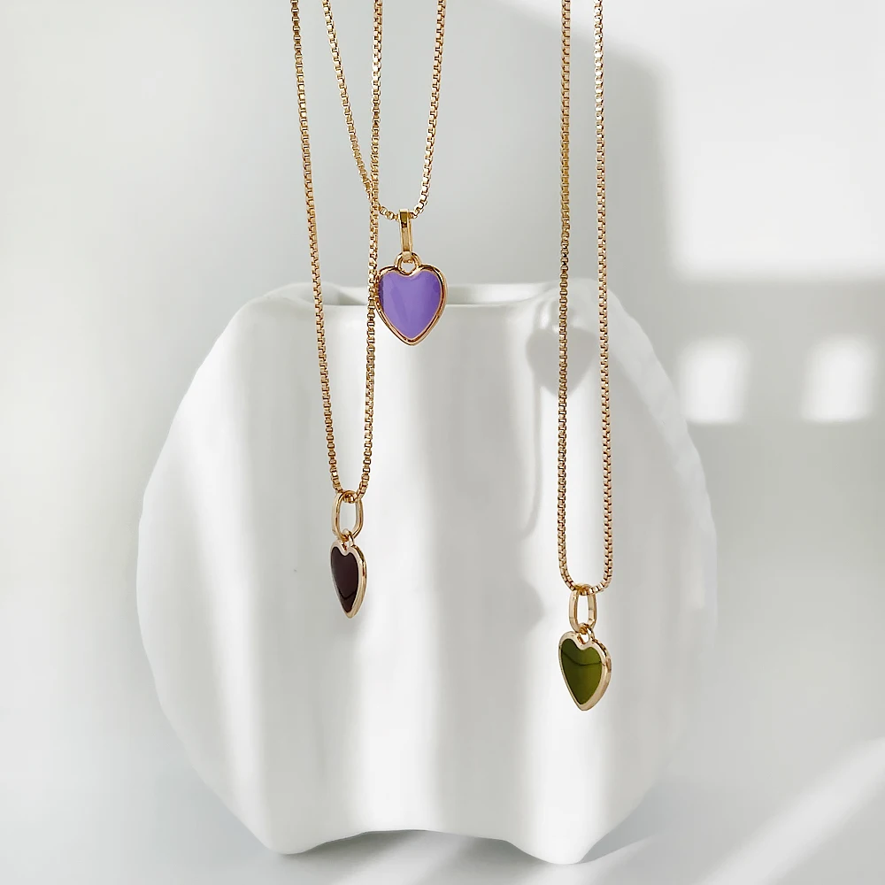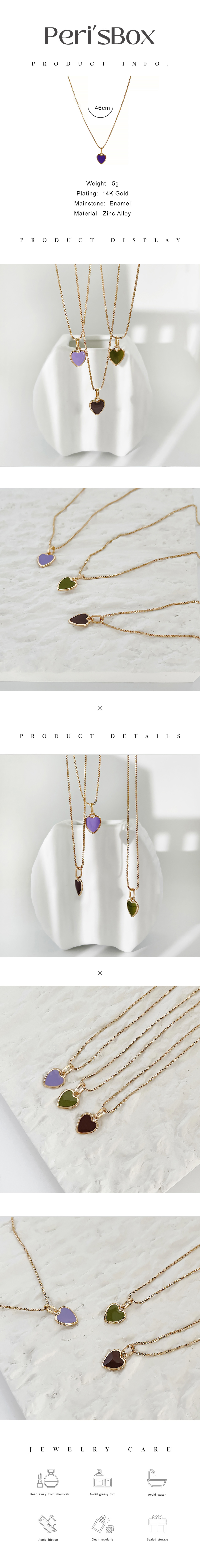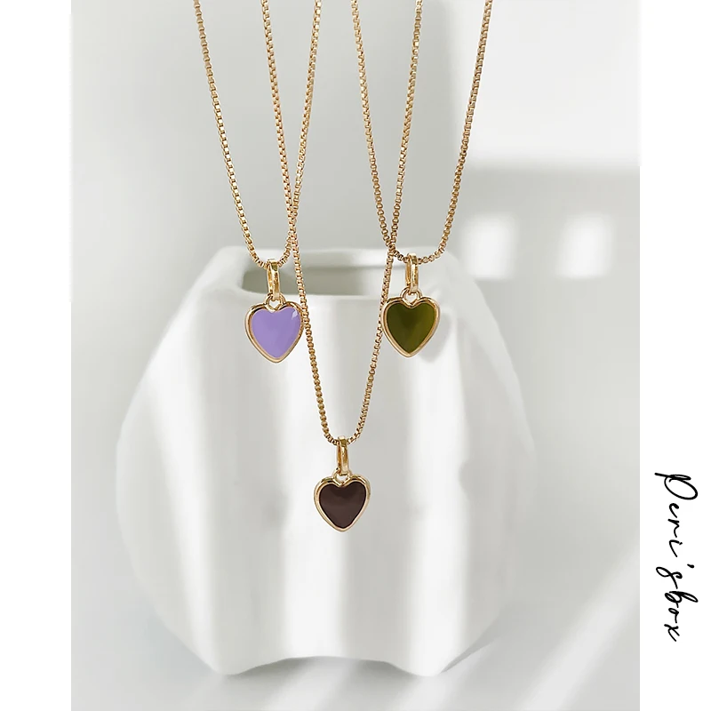 Ожерелье Peri'sBox с подвеской в виде цветного яркого эмалированного сердца для женщин, длинное ожерелье с цепочкой в виде коробки для любви, летние романтические ожерелья карамельных цветов