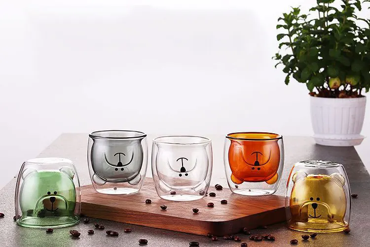 Double Wall Glass Mugs 4Cute Bear Double-layer Coffee Mug