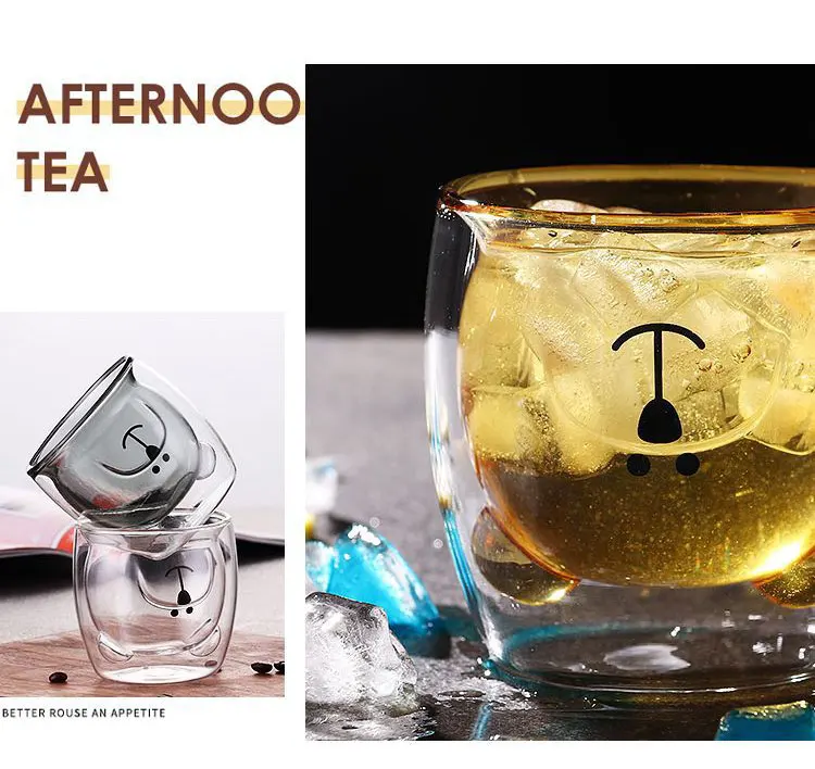 Название: стеклянная чашка с двойными стенками Материал: высокоборосиликатное стекло Емкость: 230 мл-280 мл Форма: медведь, кошка, Happybear и так далее Прямая поставка: предложение диапазон использования: подарок для дома/школы/офиса: дети (день рождения. Рождество. Новогодние подарки)