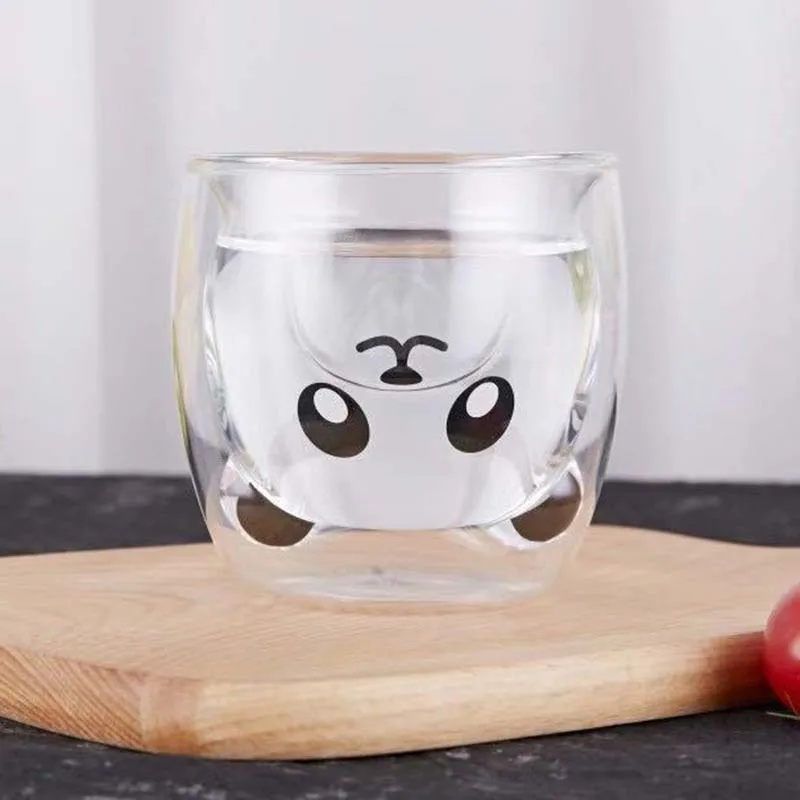 Double Wall Glass Mugs 5Animal Milk Glass Lady