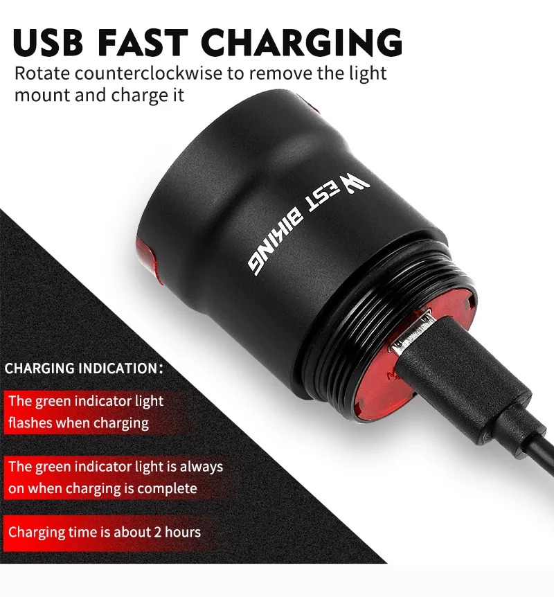 Задний светильник велосипедный WEST BIKING, водонепроницаемый, с US...