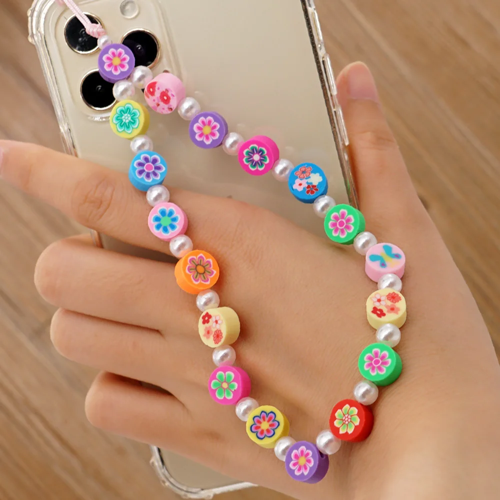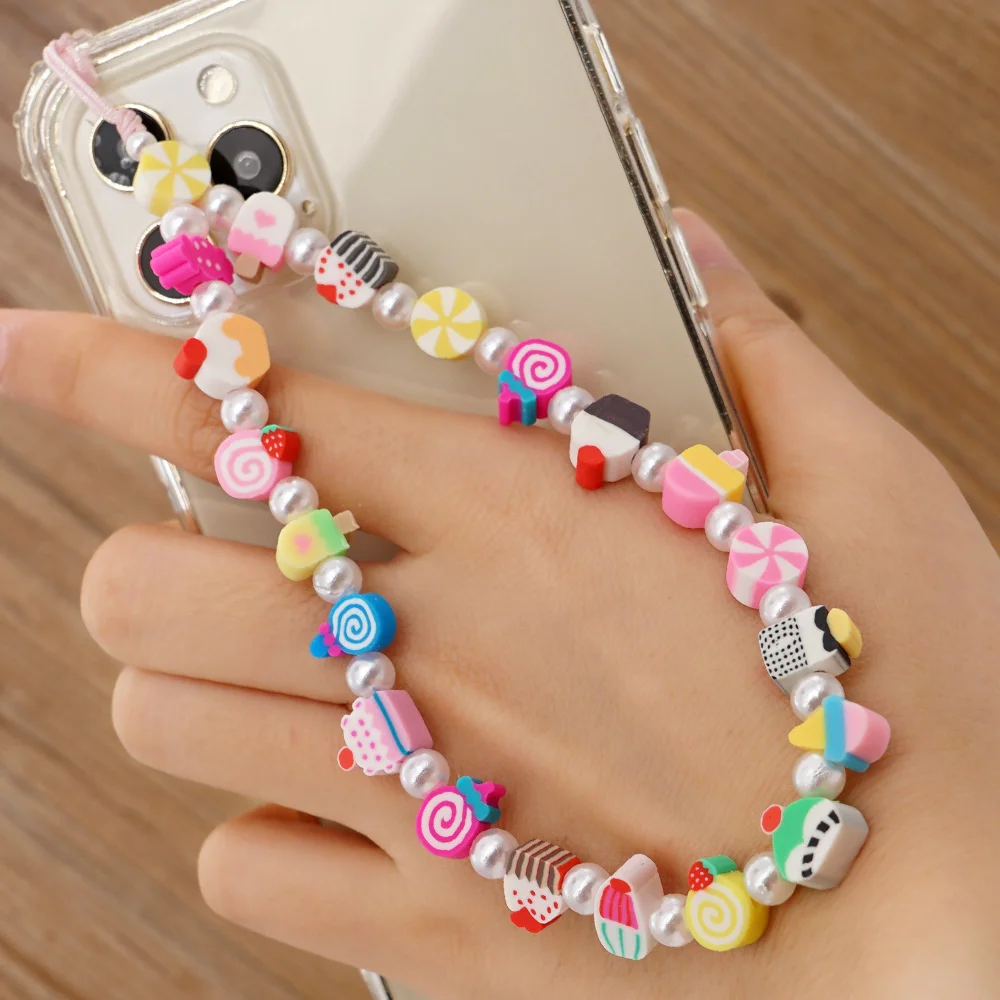 Мягкая Керамическая искусственная жемчужина искусственная цепочка в богемном стиле, ремешок для защиты от потери, женское украшение для телефона
