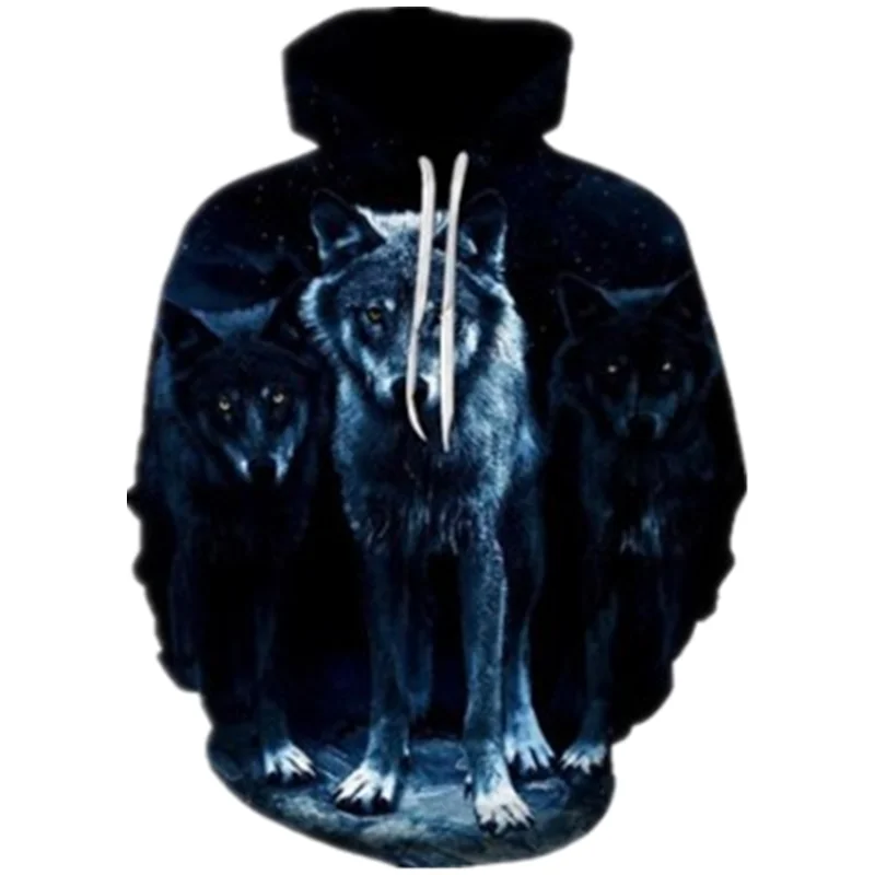 Толстовка МужскаяЖенская, с 3D-принтом волка, с капюшоном, 2021