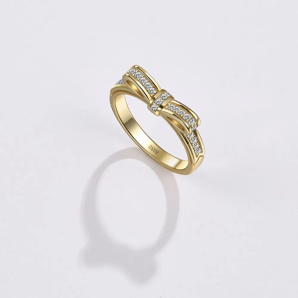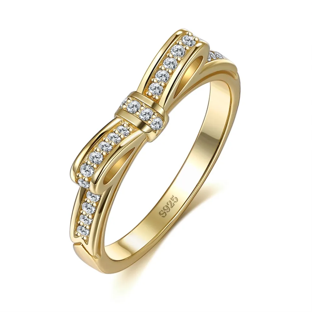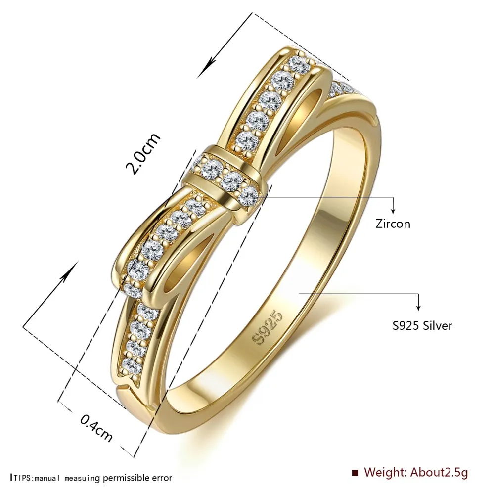 Золотое кольцо с бантом блестящие Micro Pave Цирконий 925 пробы Серебряные кольца для Для женщин, хорошее ювелирное изделие, подарок ко Дню Святого Валентина