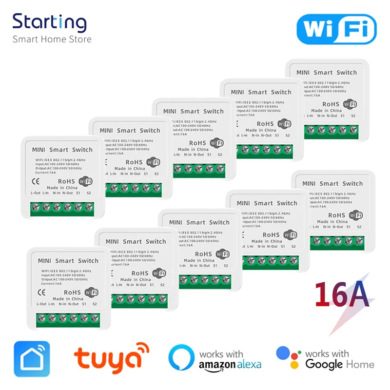 16A Wi-Fi мини DIY умный переключатель светодиодный светильник приложение Smart Life пуш-ап модуль поддерживает связь с 2-мя способ реле Таймер работать с Tuya Google Home Alexa