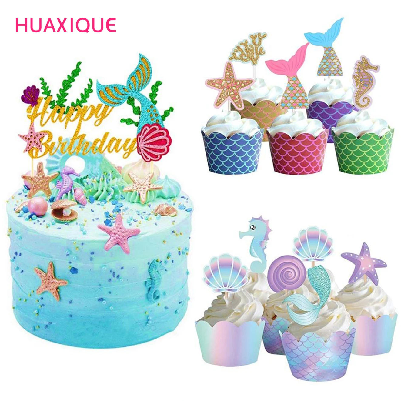 День рождения Русалка Вечерние для капкейка-упаковочных материалов, давайте быть русалки Baby Shower День рождения вечерние поставки торта украшения