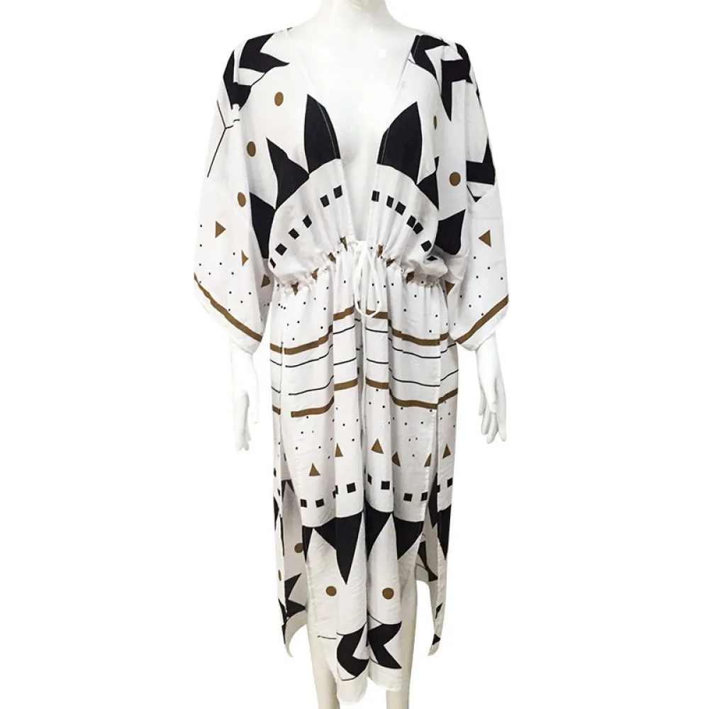 Летнее платье с V-образным вырезом, блузка бикини, сексуальная женская черно-белая пляжная одежда, купальник, накидка, женское платье