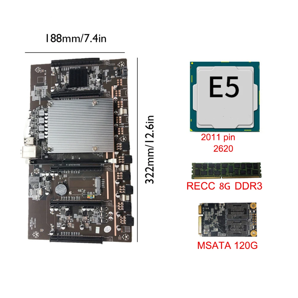 BTC-X79 двойная материнская плата для майнинга, 8 PCIE 16X DDR3, 2011 контактов, расстояние между 65 мм, поддержка 3060 графики, для Btc Eth Zec Rig