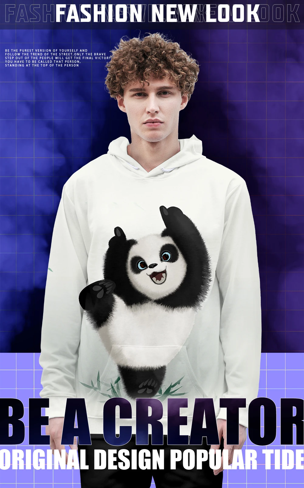 Белая толстовка с капюшоном, толстовки с 3d рисунком панды, мужские и женские толстовки, детские пуловеры с капюшоном в виде панды для мальчиков и девочек, топы в стиле хип-хоп с 3D рисунком, осень