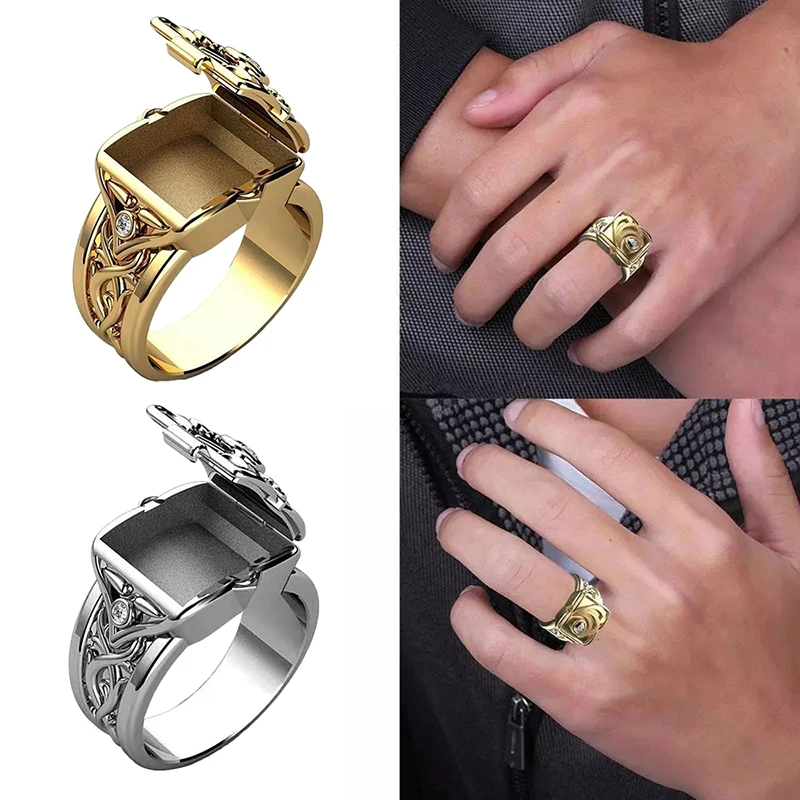 Модное мужское кольцо с откидной крышкой в стиле хип-хоп и панк, Ун...